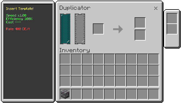 - Processing Rate: 400 DE/tick (slow, high precision)