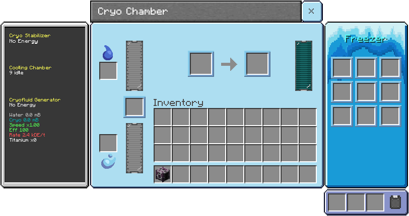 - Titanium: 1000 mB water → 800 mB Cryofluid.