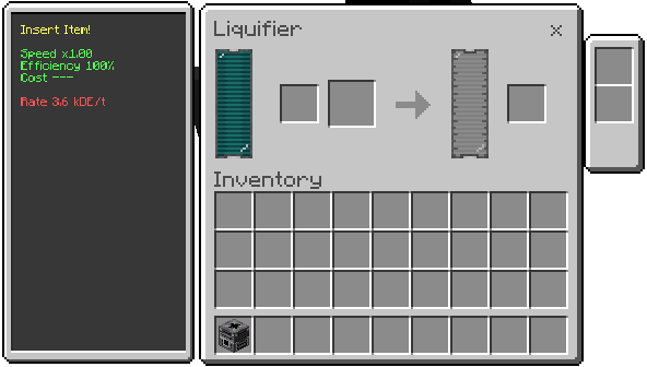 - Converts solid items into fluid in the internal tank.